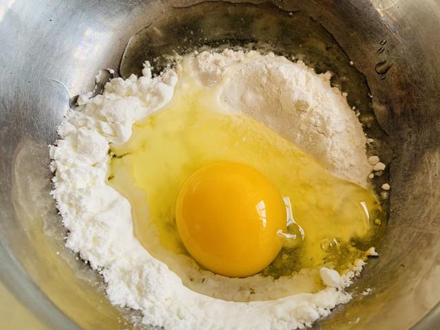 面粉、淀粉、鸡蛋、水,调成面糊,不用问我比例,我乱来的,淀粉不加应该也可以,最好再加一点盐,跟馅料里那点酱油与盐,遥相呼应一下子哈